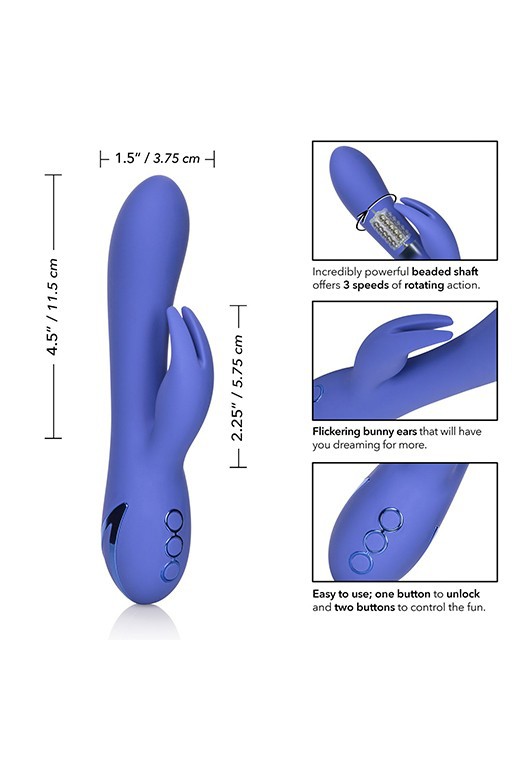 Вибратор-ротатор с бусинами в стволе "Beverly Hills Bunny" синий